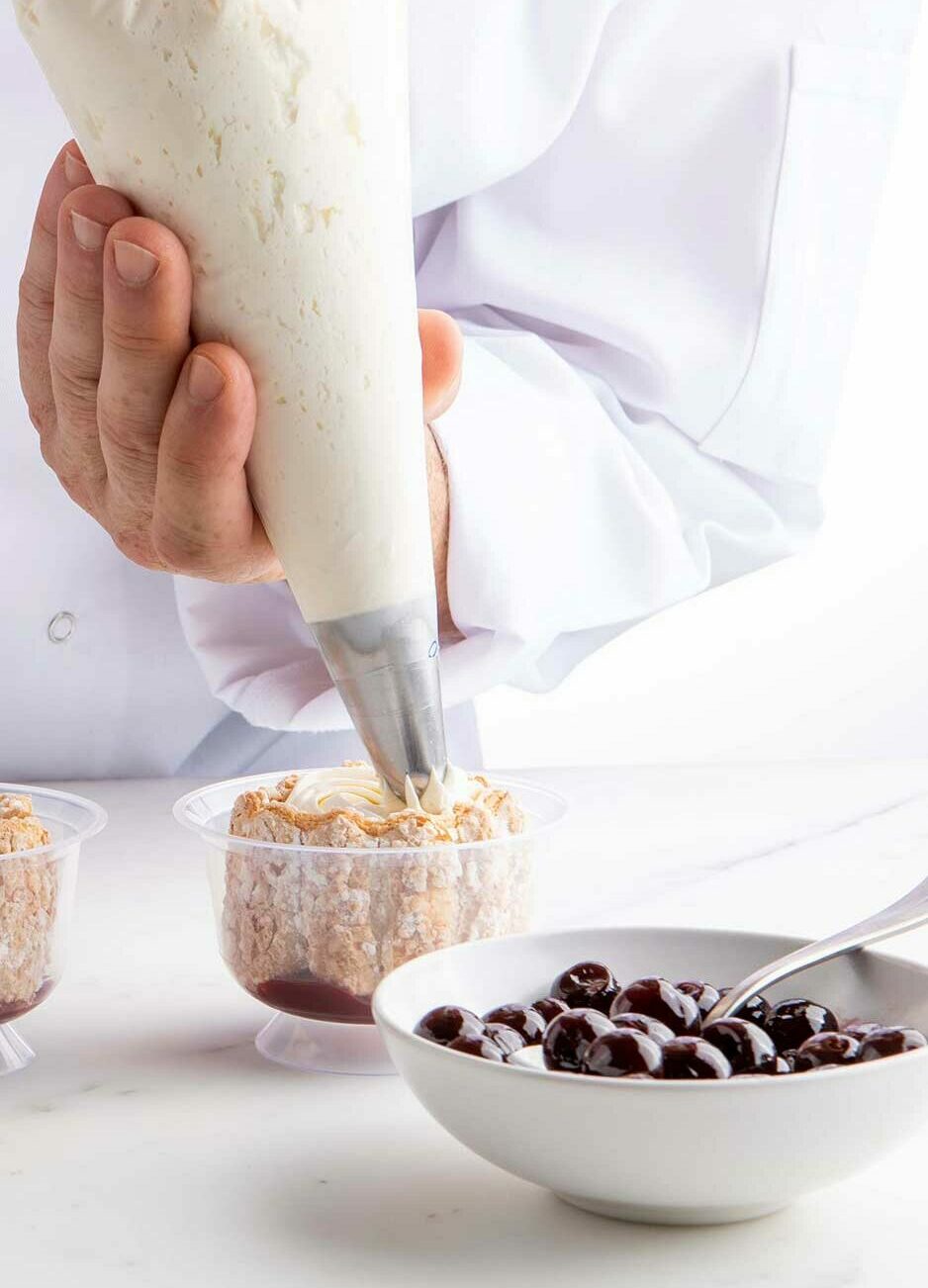 Notre Charlotte aux griottes est élaboré avec les incontournables griottes Amarena de la Maison italienne Fabbri.
