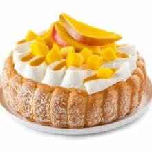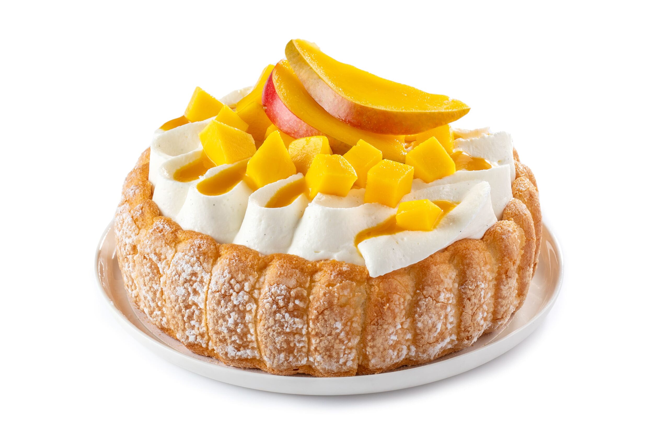 Exotique et raffinée, cette charlotte associe une crème MADAME à la vanille et à la mangue. Une touche de fraîcheur tout en élégance. Composition : Biscuit, crème mascarpone, vanille, mangue. Allergènes : œuf, lait, gluten.