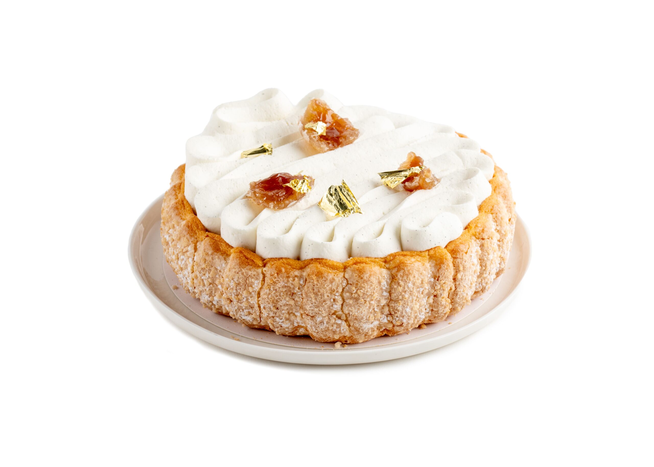 Une charlotte aux saveurs de fête, mêlant crème MADAME à la vanille et crème de marrons glacés. Fondante, parfumée, un plaisir délicat. Composition : Biscuit, crème mascarpone, vanille, marron glacé. Allergènes : œuf, lait, fruits à coque, gluten.