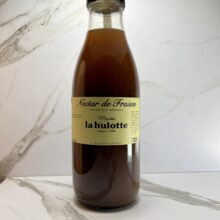 Un nectar pur fruit, intensément parfumé, à la robe rouge éclatante. La fraise s’y dévoile juteuse, charnue et gourmande. À savourer frais, simplement. 1 litre de gourmandise. Composition : Fraise, eau, sucre de canne. Allergènes : aucun.