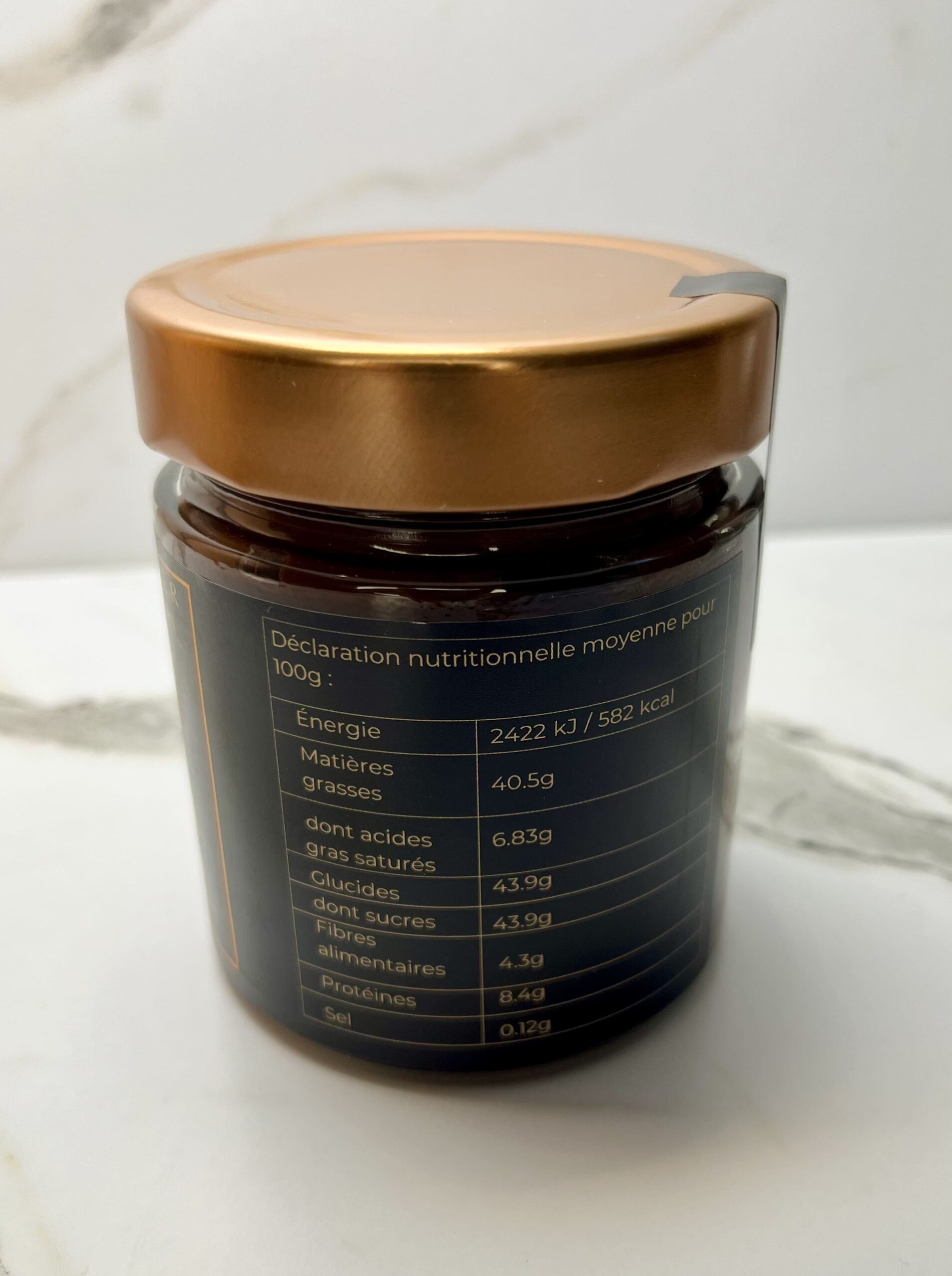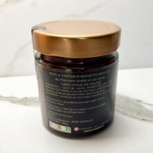 Une pâte à tartiner préparée artisanalement par Amélie sur la presqu’ile de Saint Tropez. Elle est onctueuse et généreuse, au bon goût de noisettes du Piémont et de chocolat. À déguster à la petite cuillère ou sur une brioche tiède. 230g de gourmandise. Composition : Noisette, sucre, chocolat, huile végétale. Allergènes : fruits à coque, lait.