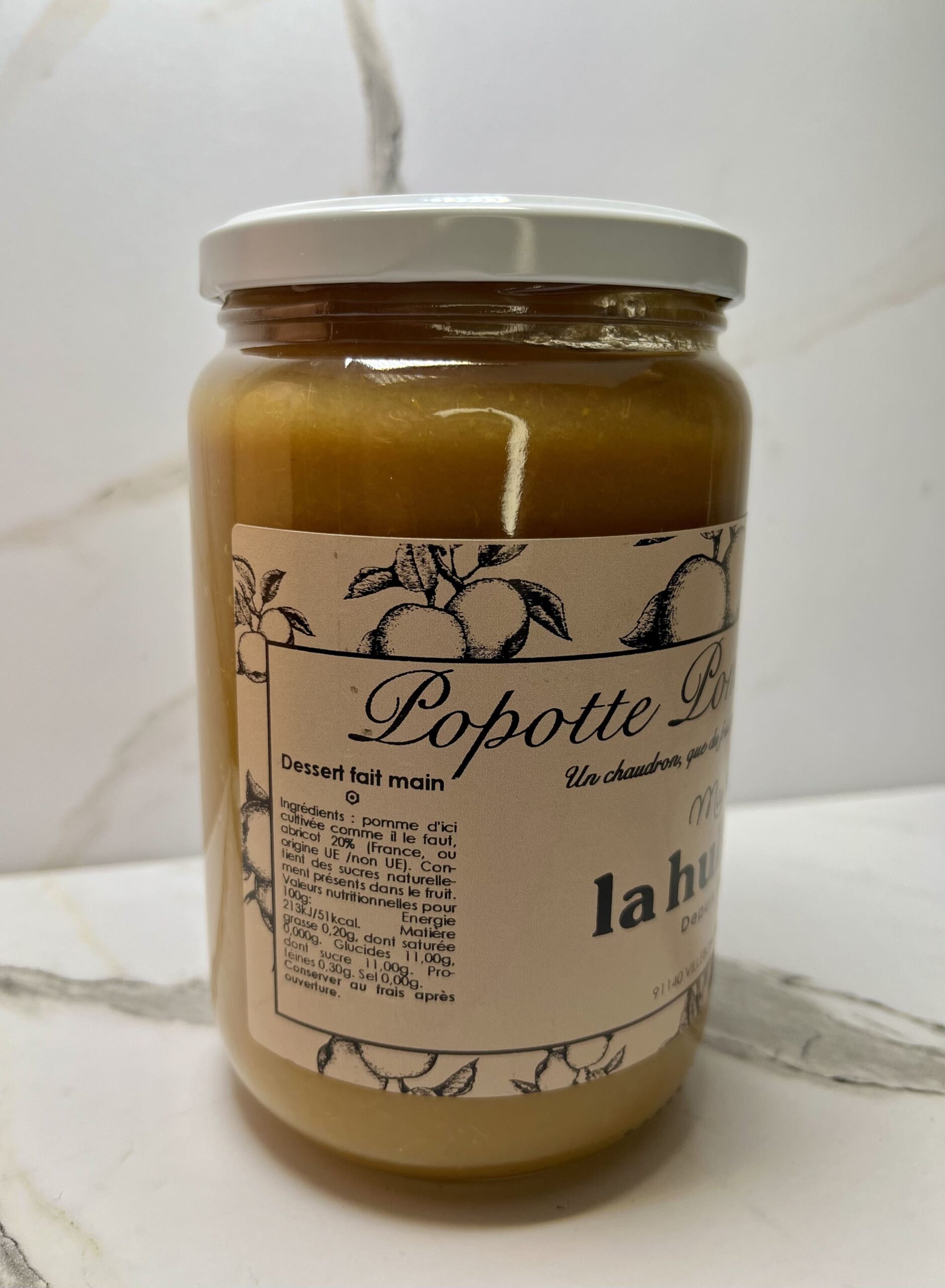 L’authenticité de la pomme se marie à la douceur acidulée de l’abricot dans cette popotte artisanale cuite lentement au chaudron, sans conservateur. Une recette délicate et onctueuse, idéale à tout moment de la journée. 700g de gourmandise. Composition : Pomme, abricot. Allergènes : aucun.