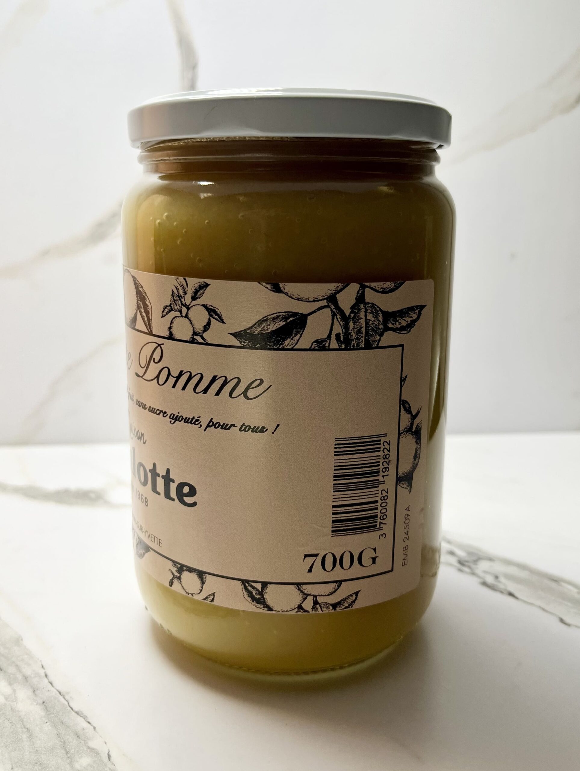 Une purée fondante et naturelle, où la pomme dévoile toutes ses nuances, de la fraîcheur acidulée à la douceur caramélisée. Sans ajouts de sucre ni artifices, juste le fruit et le savoir-faire. 700g de gourmandise. Composition : Pomme. Allergènes : aucun.