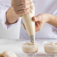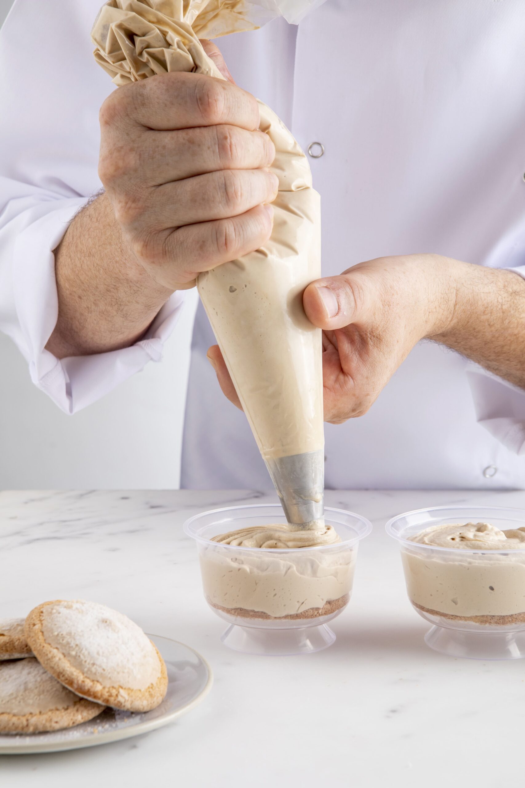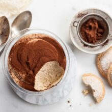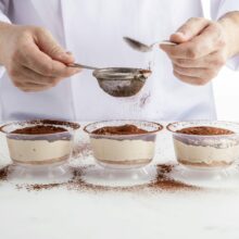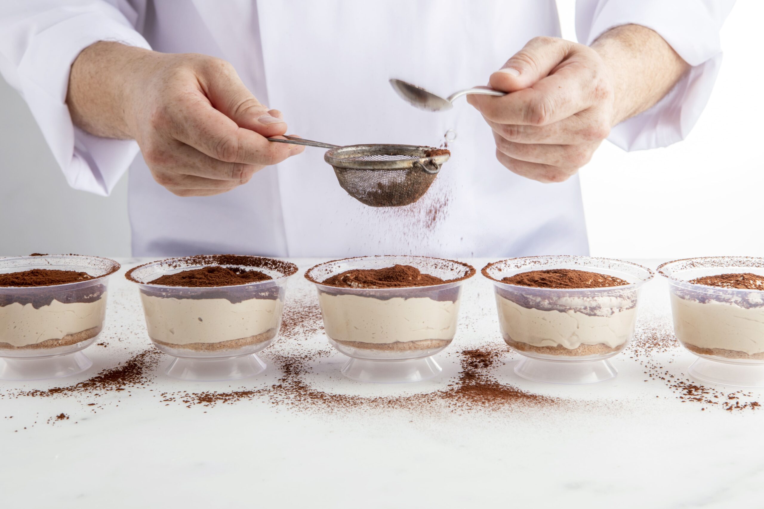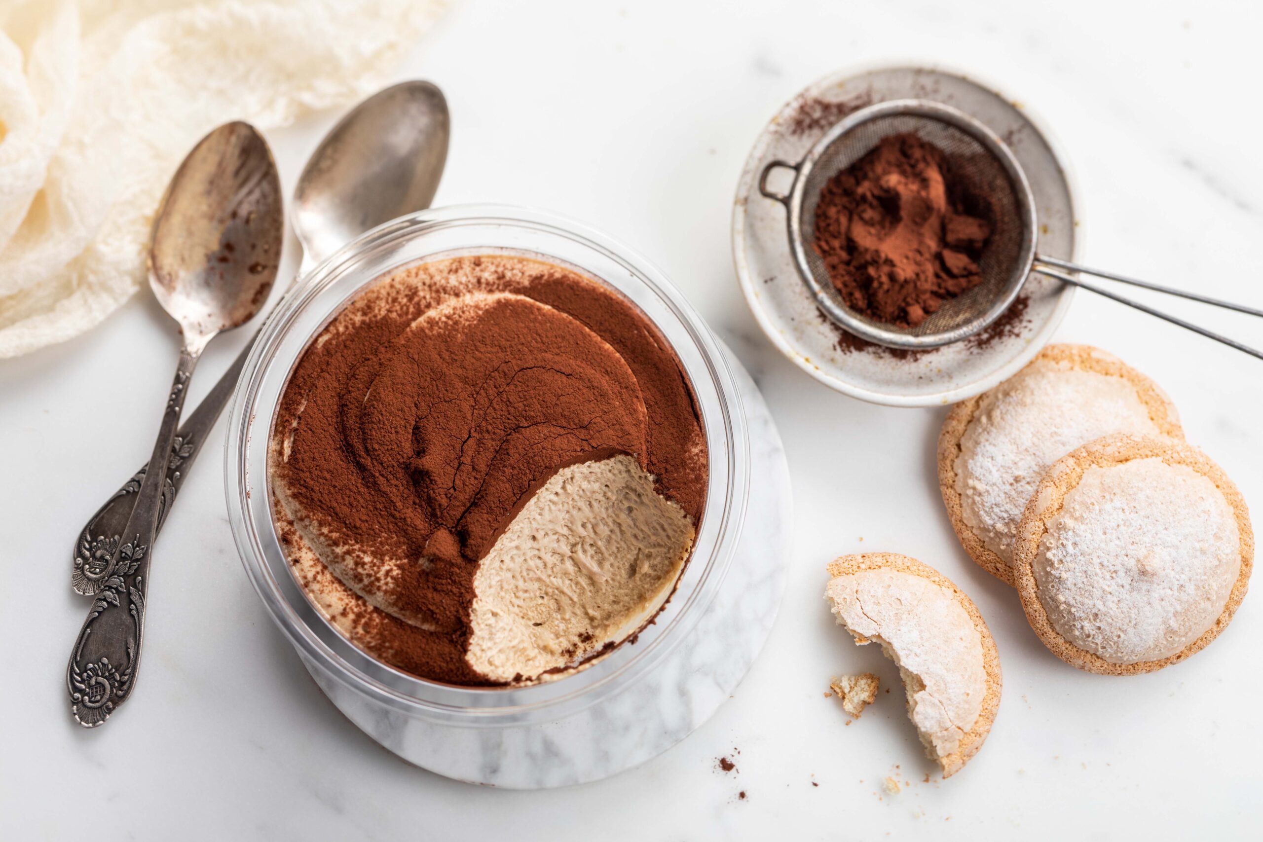 Le tiramisu classique dans un petit format. Café corsé, mascarpone soyeux, biscuit moelleux. Composition : Mascarpone, œufs, biscuit, café. Allergènes : œuf, lait, gluten.